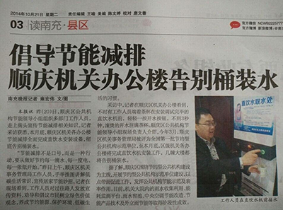 新疆烏市、四川南充等地政府機關(guān)辦公樓已開展節(jié)約型公共機構(gòu)示范單位建設(shè),以點帶面促進工作,發(fā)揮公共機構(gòu)節(jié)能示范及表率工作。艾迪衛(wèi)節(jié)能直飲水設(shè)備有幸參與到節(jié)能減排直飲水設(shè)備安裝項目中,并試點成功,為國家的節(jié)能減排工作盡一份綿薄之力!(如下圖為安裝現(xiàn)場)