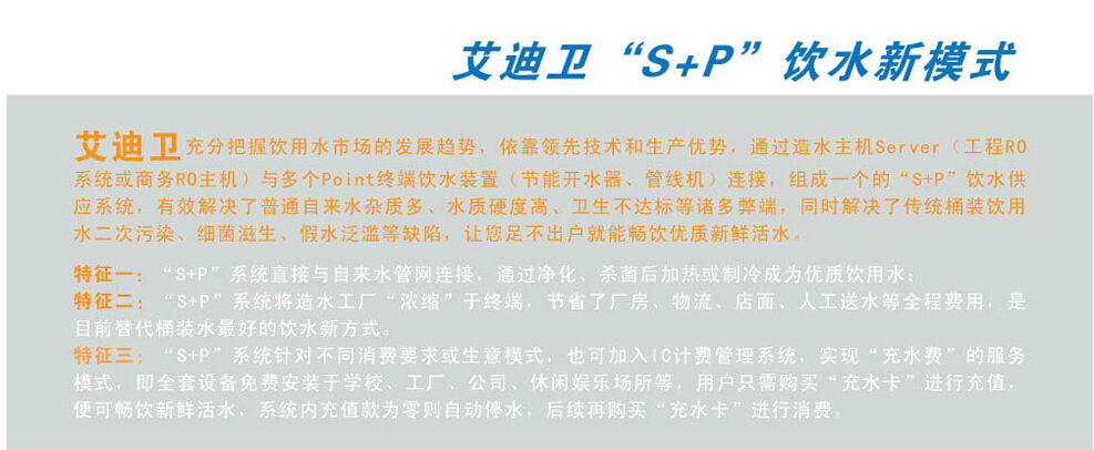 開水器哪個牌子好?開水器哪個廠家實力強?艾迪衛(wèi)以8年的開水器生產(chǎn)制造經(jīng)驗建議您購買開水器認準正規(guī)廠家,認證艾迪衛(wèi),而對于艾迪衛(wèi)的飲水模式,在“艾迪衛(wèi)“S+P”新飲水模式專題”一文中有詳細介紹這方面。